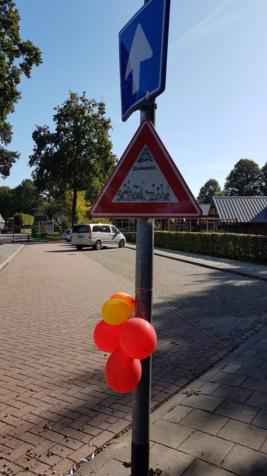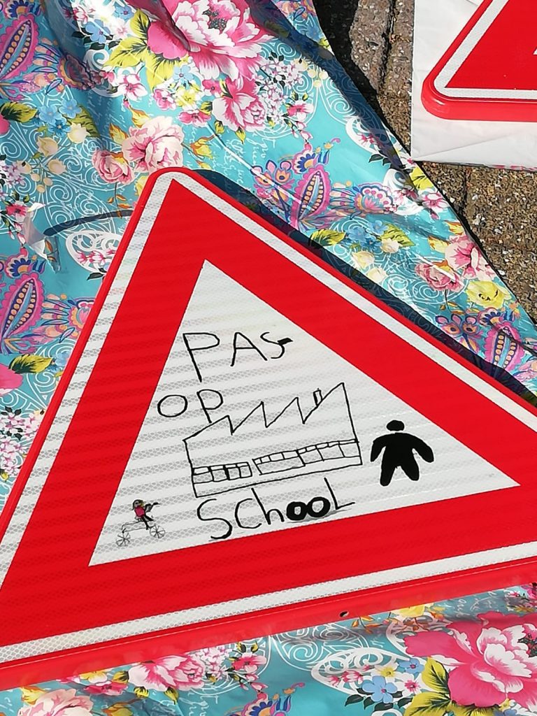 Op vrijdagochtend 20 september heeft wethouder Anique Snijders samen met de 3 jeugdige ontwerpers de verkeersborden rondom de Zuiderenk onthuld. De verkeersborden moeten ervoor zorgen dat de school voor de weggebruikers duidelijker zichtbaar wordt. De verkeersborden zijn ontstaan via de projectgroep “Veilig door het Dorp”. In deze projectgroep is het de bedoeling om de bewustwording van deelname aan het verkeer te vergroten.