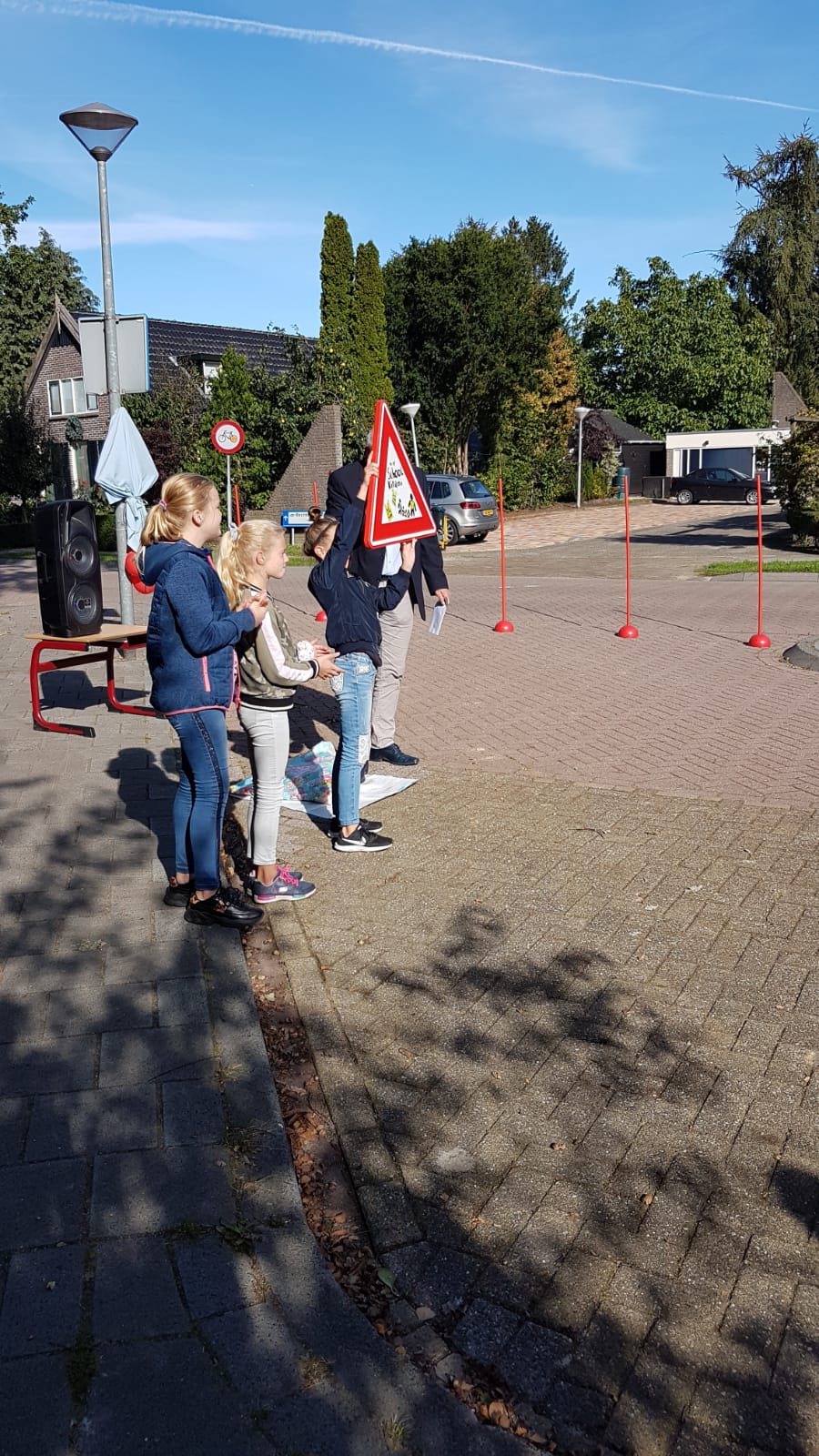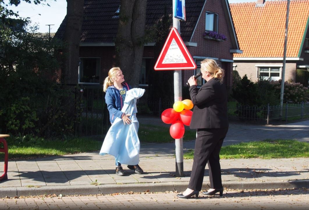Tijdens de onthulling werd nog speciaal benoemd dat ook het gedrag van kinderen in het verkeer belangrijk is. Berg daarom je mobiel op tijdens het fietsen en zorg voor een goede fietsverlichting!